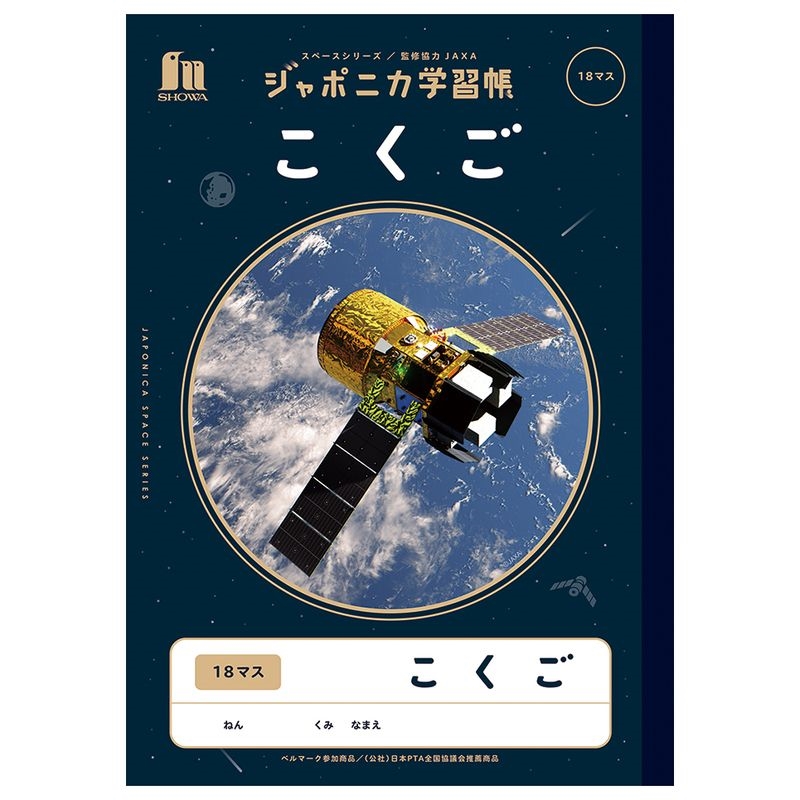 従来のジャポニカ学習帳の四角い枠ではなく、国際宇宙ステーションをイメージした丸い枠のデザインが表紙。