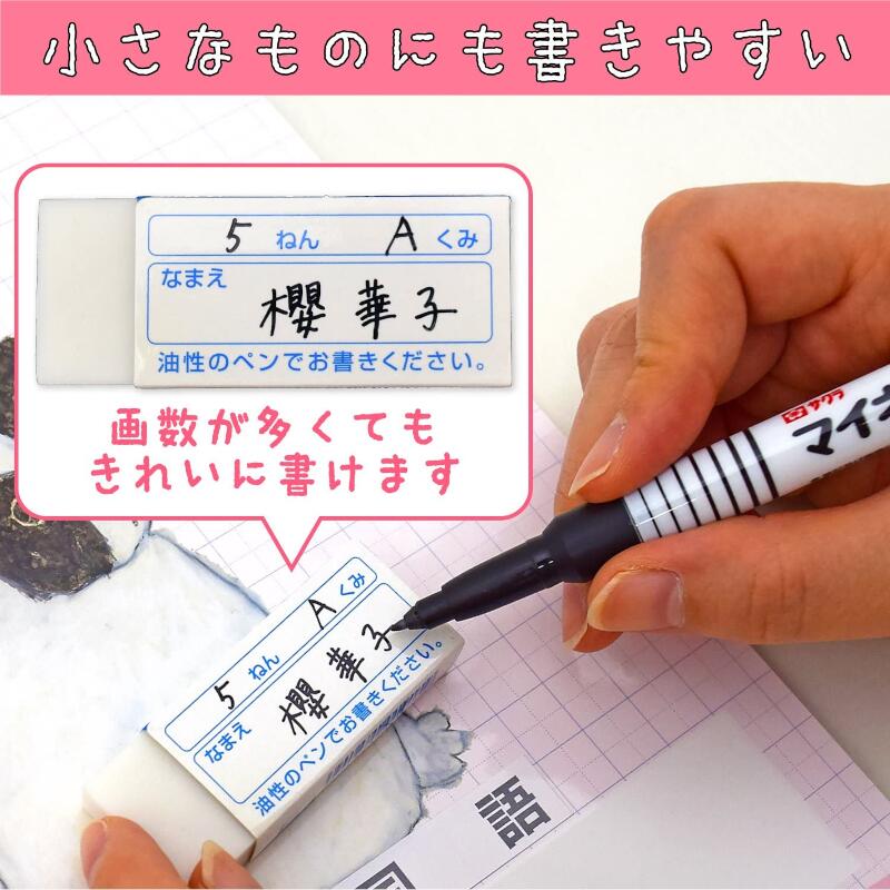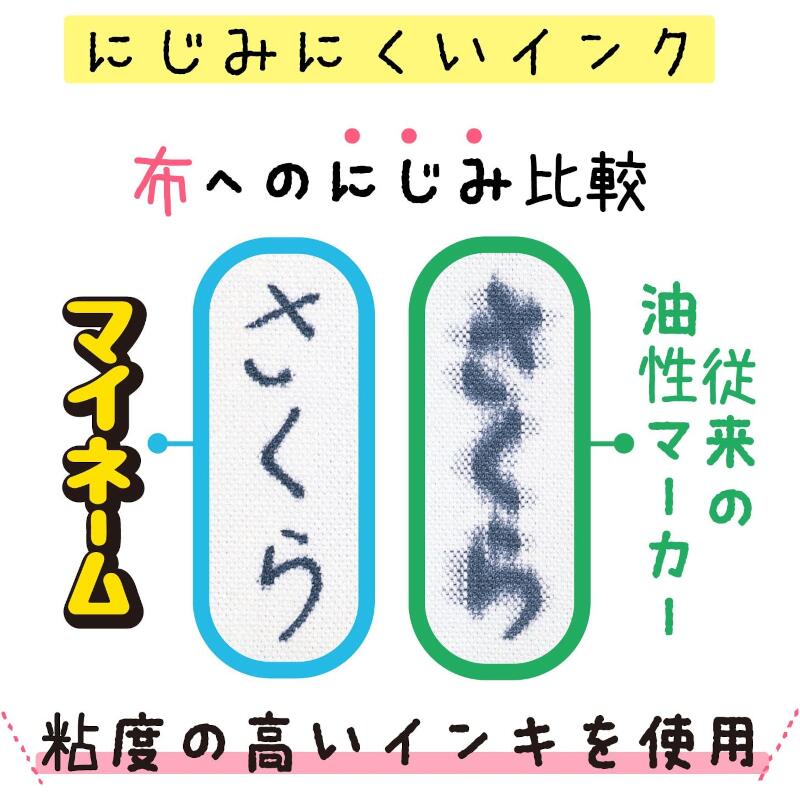 ・マイネームのインキは従来の油性マーカーのインキと比較して粘度が約2倍と高くなっています。