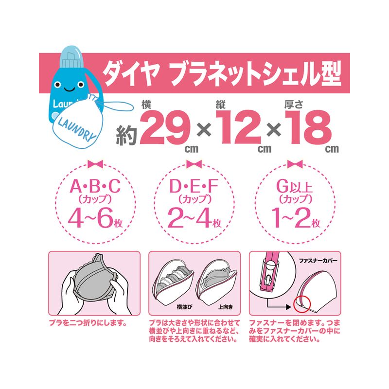 口が大きく開く新開発のシェル型構造でブラの出し入れがしやすく、大きなブラジャーも入ります。