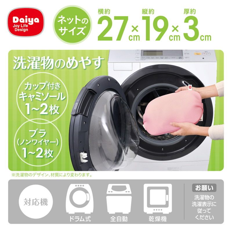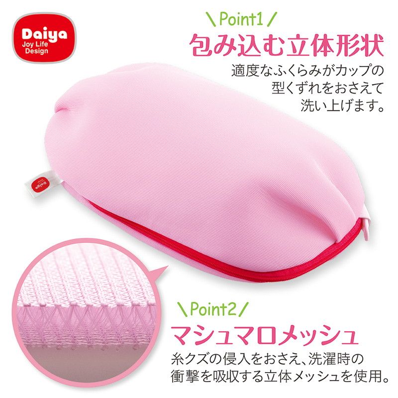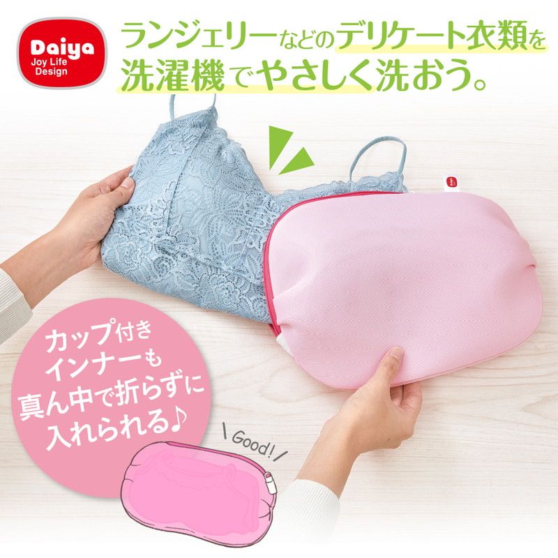 適度なふくらみがある立体形状なので、カップ付きインナーやノンワイヤーブラなど様々なランジェリーをやさしく洗えます