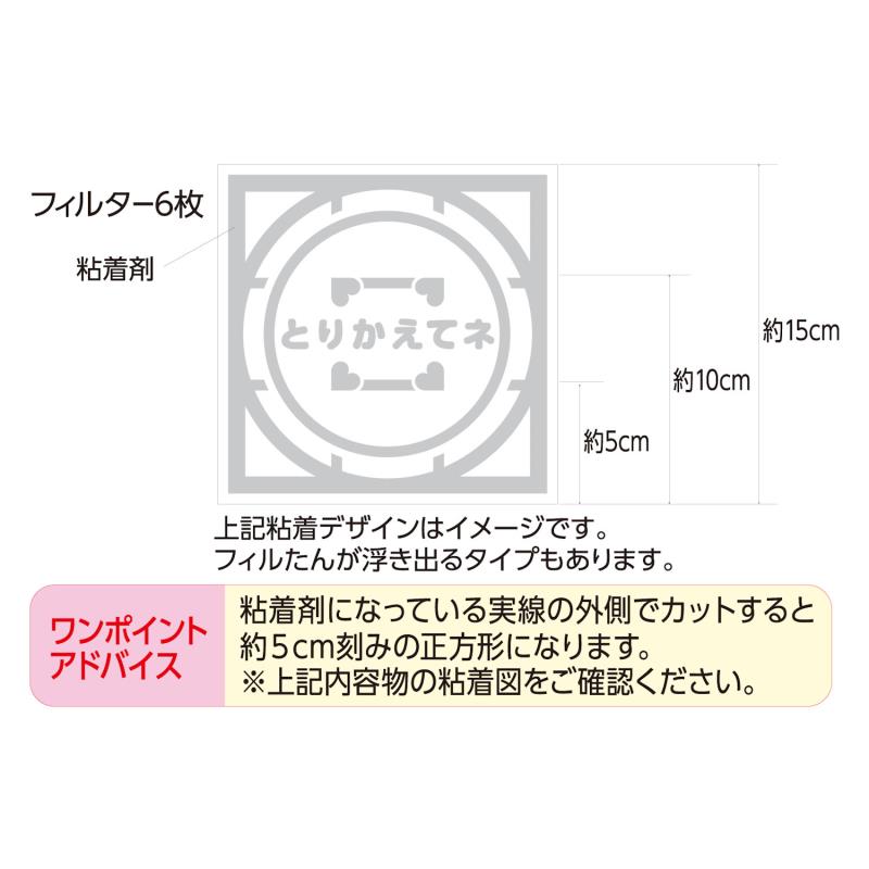 ●粘着タイプのフィルターなので、取付けがシールのように簡単に行えます。