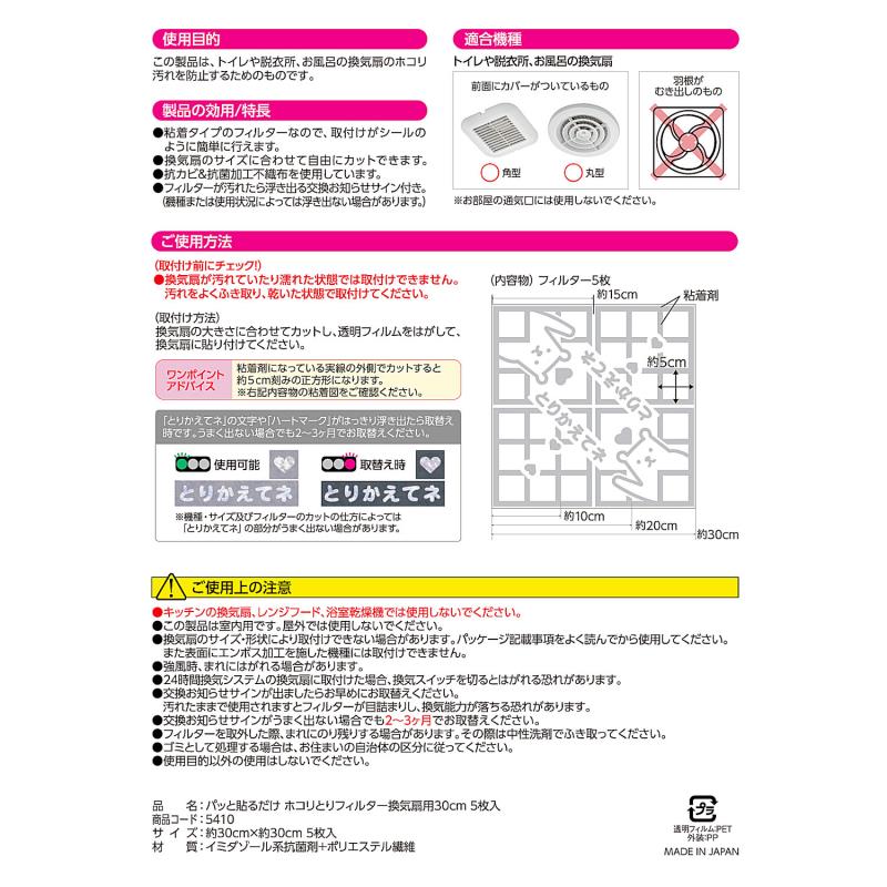 ●この製品はトイレや脱衣所、お風呂の換気扇のホコリ汚れを防止する為のものです。