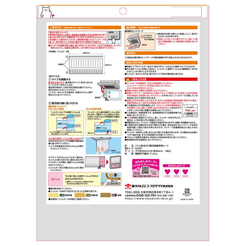 ●整流板レンジフード用の汚れ防止シートです。