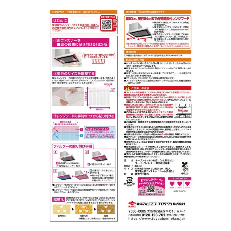 ●吸油力が高い厚手のフィルターを使用していますので、しっかり油汚れを防ぎ、長くお使いいただけます。
