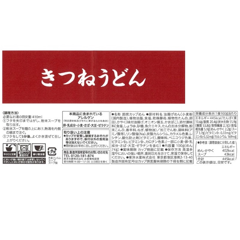 具材にはふっくらとした味付け油揚げやオニオン揚げ玉、かまぼこ、ねぎを使用した味わい深いきつねうどん。