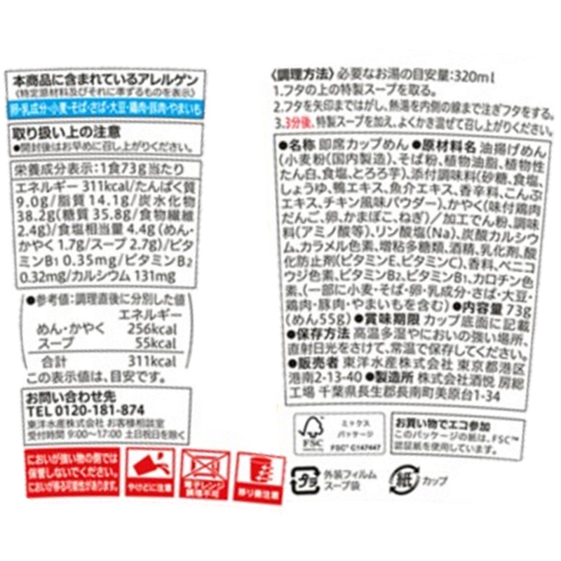 具材には味付鶏団子、たまご、かまぼこ、フリーズドライねぎ入り。