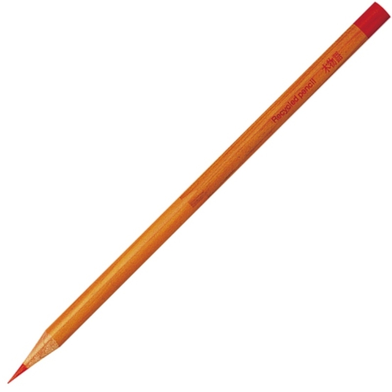 短い端材をつなぎあわせて再利用。丸軸赤鉛筆。