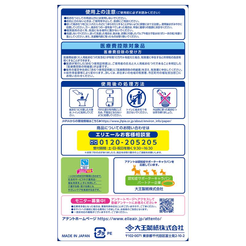 - ●表面材…ポリオレフィン系不織布●吸収材…綿状パルプ、吸収紙、高分子吸収材●防水材…ポリエチレンフィルム●伸縮材…ポリウ