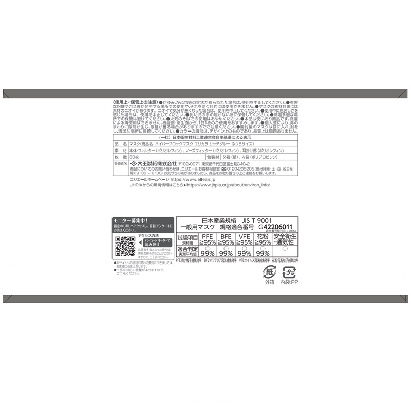 極細繊維のメルトブローン不織布採用。