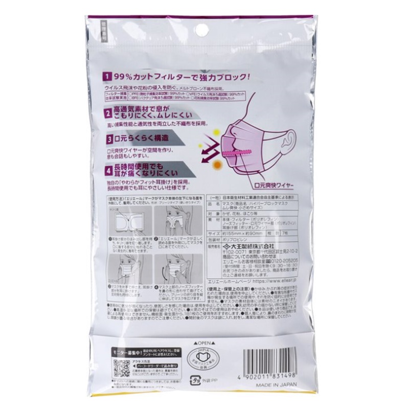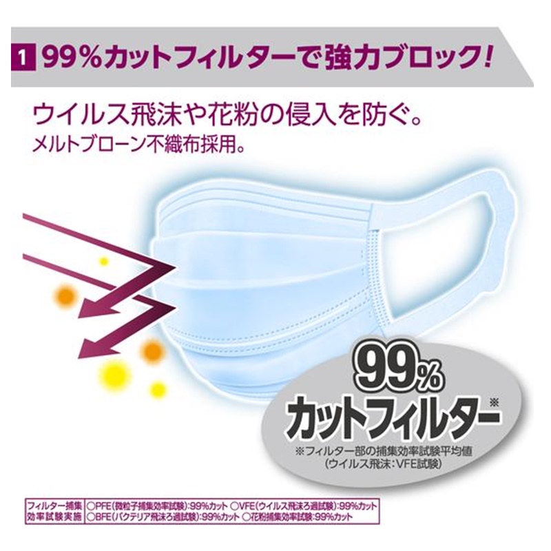 3層構造の中層に超極細の高機能フィルター(メルトブローン不織布)採用。