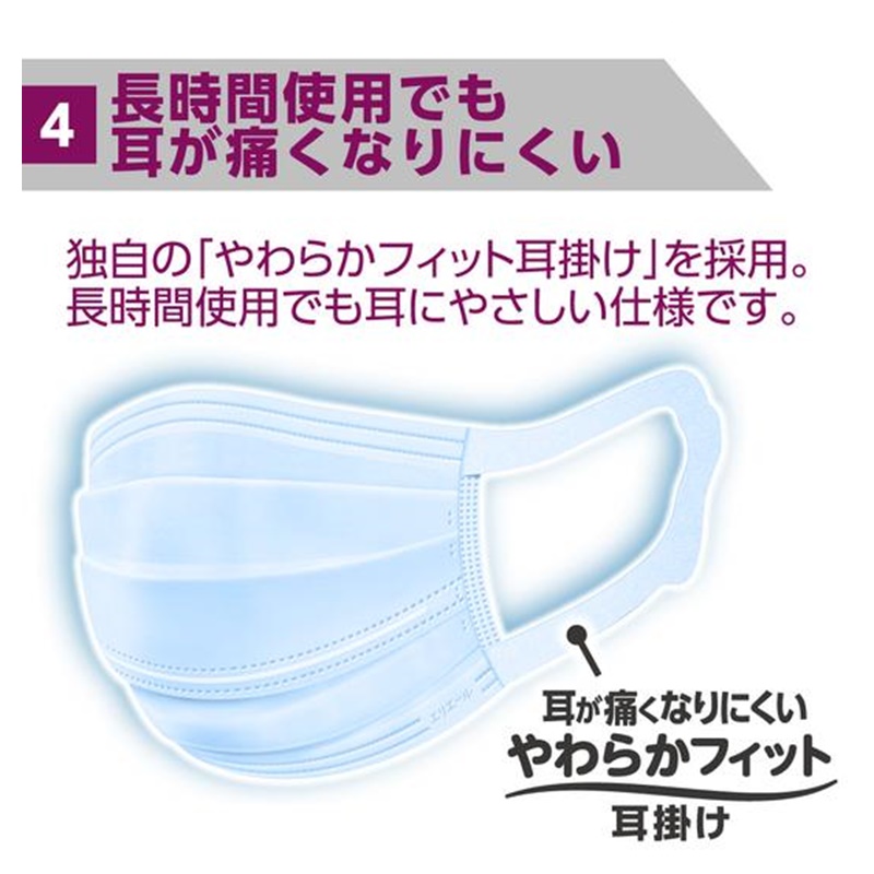 紙おむつの技術を活かした伸縮性が高い幅広の耳掛けで、長時間使用でも耳にやさしい仕様です。