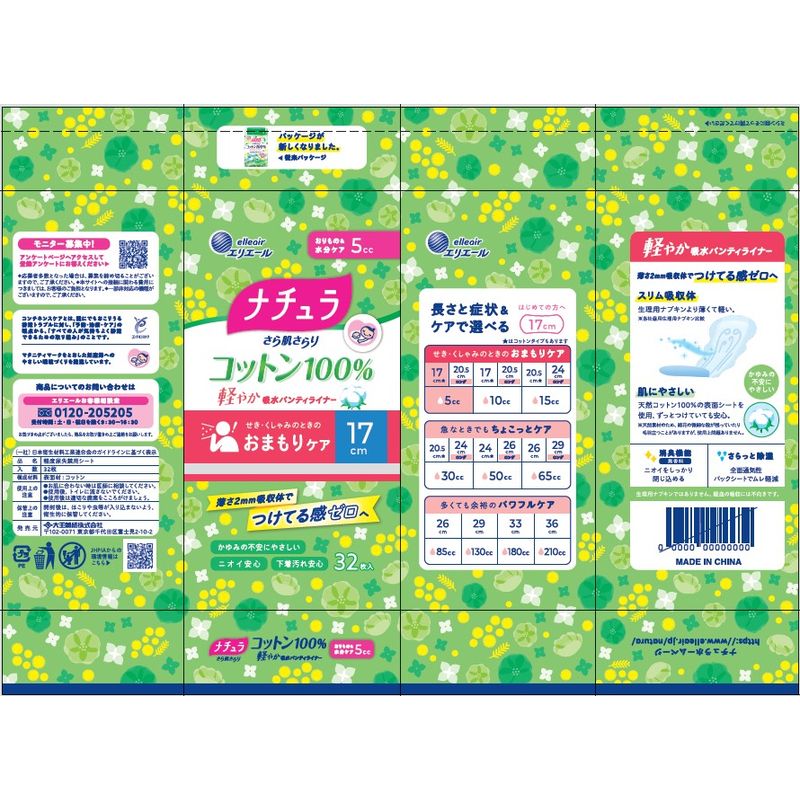 ナチュラ さら肌さらり コットン100% 軽やか吸水パンティライナー17cm 5cc 32枚