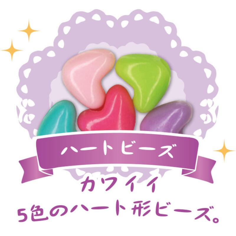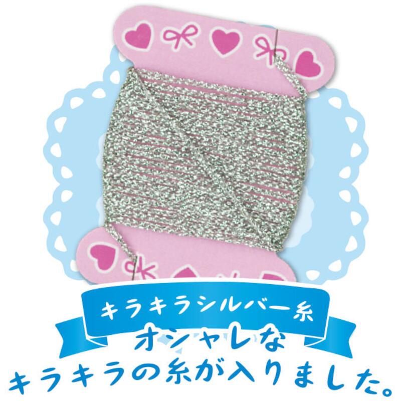 4色の糸と、かわいいハートのビーズ入りです。キラキラのシルバー糸がとってもオシャレです。