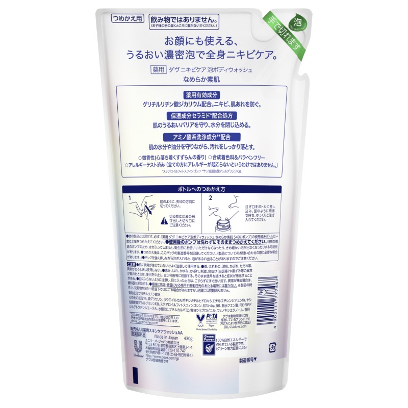 ●お顔にも使える、うるおい濃密泡で全身ニキビケア。