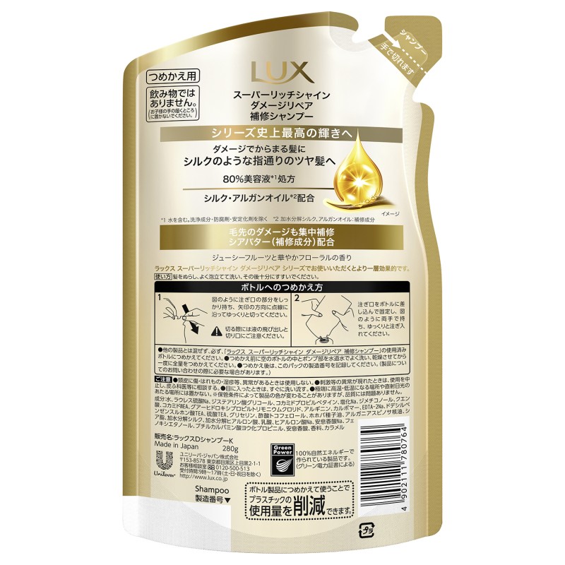 ●毛先のダメージも集中補修、シアバター(補修成分)配合。ジューシーフルーツと華やかフローラルの香り。