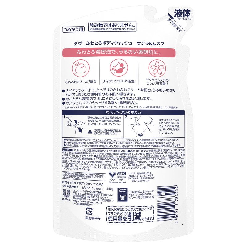 ●サクラとムスクのうっとりする香り(香料配合)。
