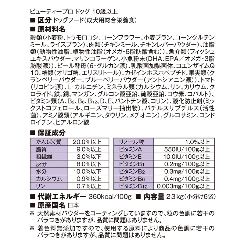 コエンザイムQ10配合のシニア犬用レシピ。優れた栄養バランスで健康維持。食べやすいサクサク粒。