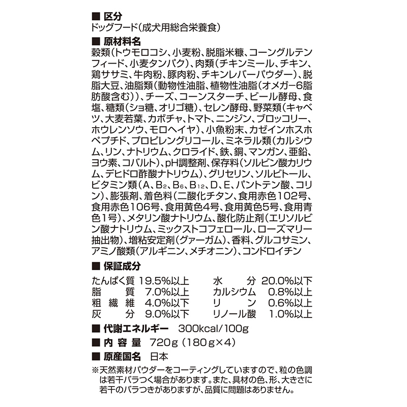 ・小分け4パック入り、成犬用総合栄養食です