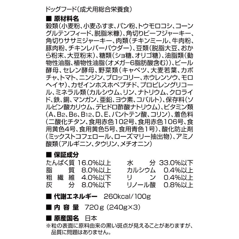 ・お肉たっぷりの圧倒的な具材量、成犬用の総合栄養食