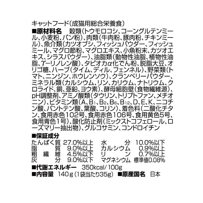 ラル成分を調整し、尿石の形成に配慮。まぐろ味に減塩かつおぶし添え。