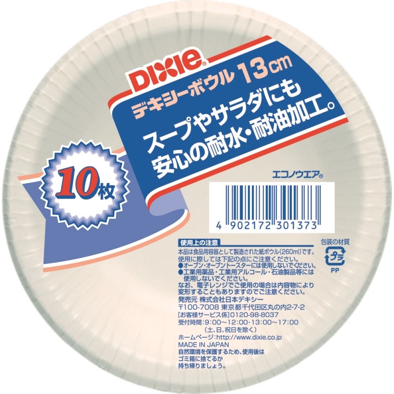 ボウル表面に耐水・耐油加工をしているのでスープからサラダまで安心して使用できます。