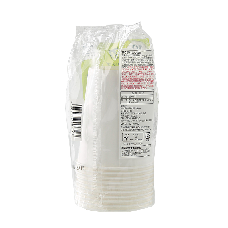 カップ内面ポリエチレンラミネート加工により、温かい飲み物や冷たい飲み物に使用できます。