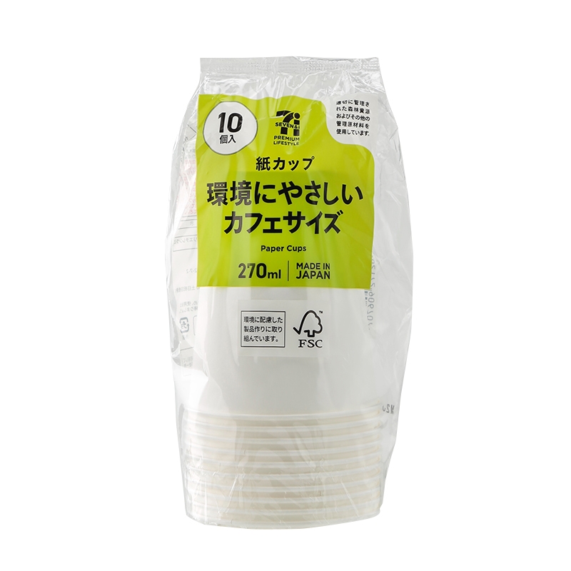 コンビニカフェやファストフードで使用されている大き目サイズ270mlの紙カップ。