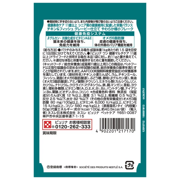 ・やわらか極小フレークで食べやすい、グレービー仕立てのシニア猫ちゃん用総合栄養食です。
