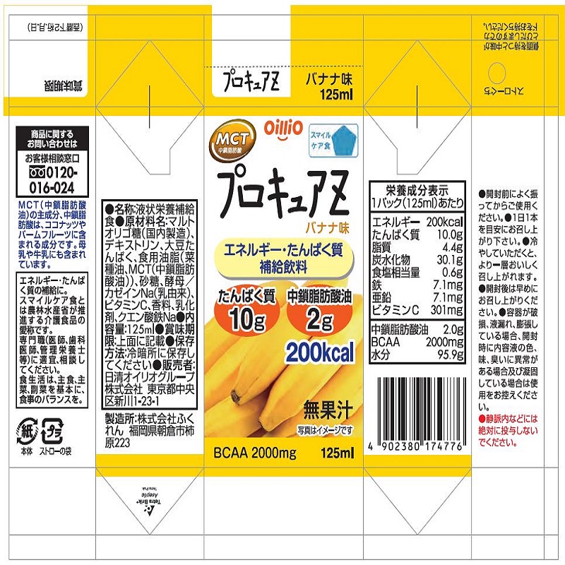 バナナ味のスマイルケア食「青」マークの飲料です。