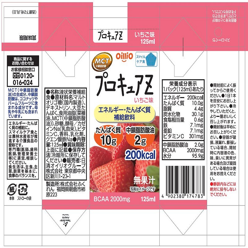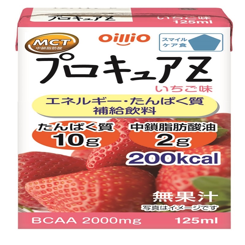 いちご味のスマイルケア食「青」マークの飲料です。