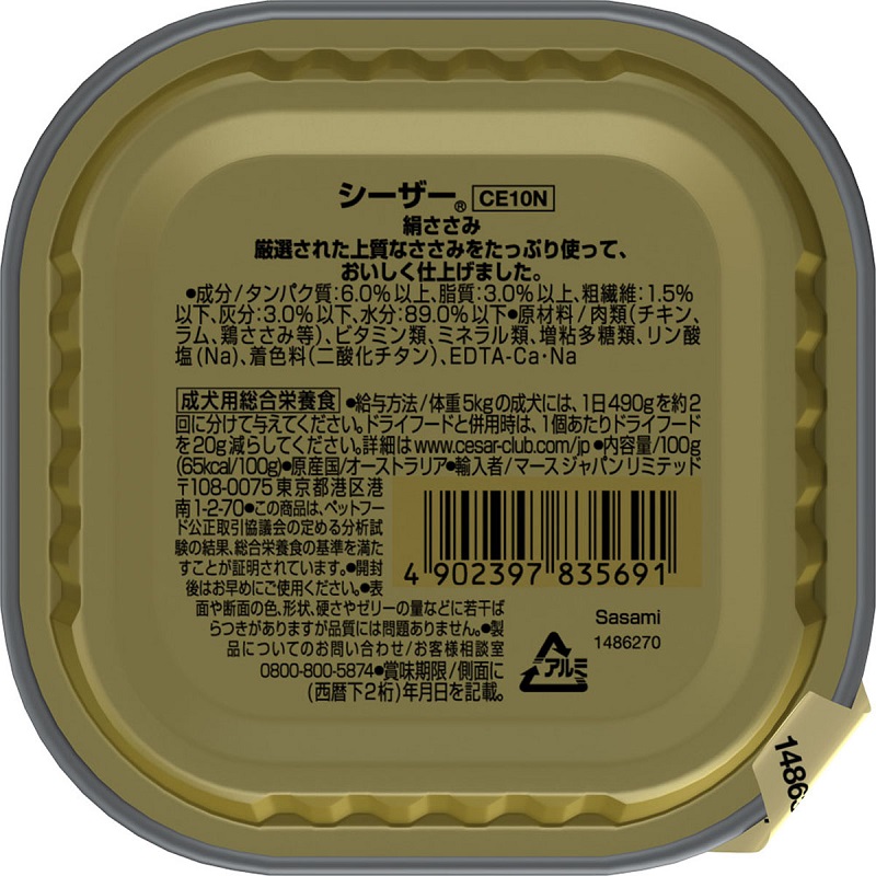 - 肉類(チキン、ラム、鶏ささみ等)、ビタミン類、ミネラル類、増粘多糖類、リン酸塩(Na)、