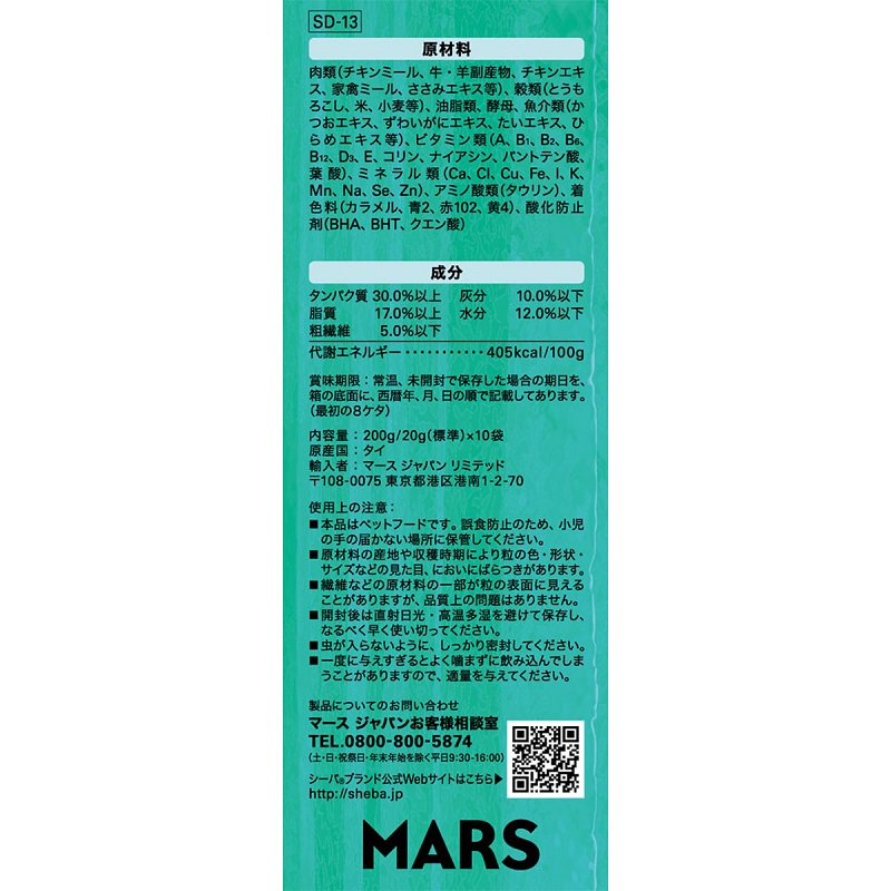 - 肉類(チキンミール、牛・羊副産物、チキンエキス、家禽ミール、ささみエキス等)、穀類(とうもろこし、米、小麦等)、