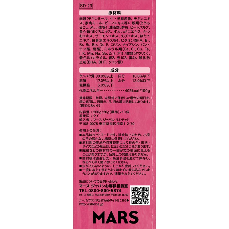 油脂類、酵母、ビートパルプ、魚介類(まぐろエキス、ずわいがにエキス、かつおエキス、サーモンエキス、えびエキス、