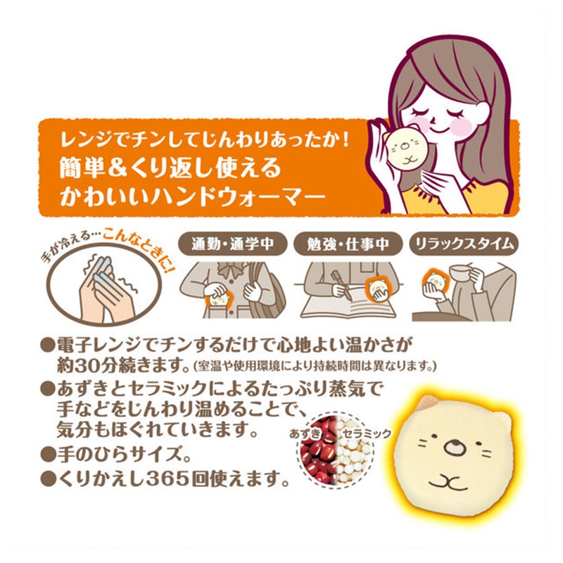 電子レンジでチンするだけで心地よい温かさが約30分続きます。(室温や使用環境により持続時間は異なります。)