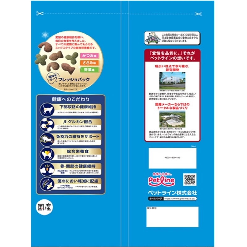 毎日の食事を、すべての猫ちゃんに喜んでもらえるように考えたミックスタイプのキャットフード。かつお味。