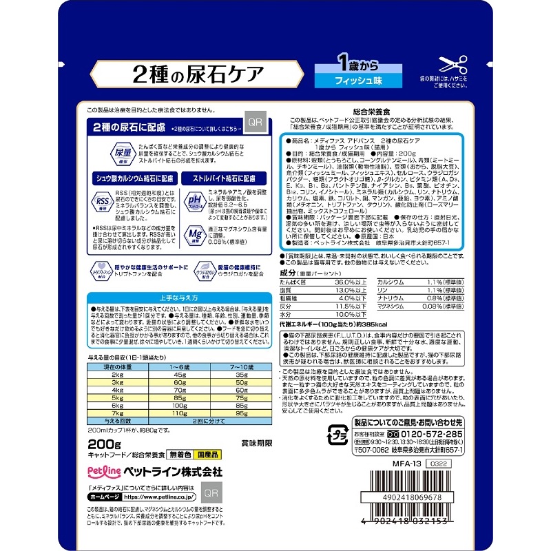 「RSS管理」と「尿量の確保」設計により「シュウ酸カルシウム結石」と「ストルバイト尿石」の2種の尿石に配慮。