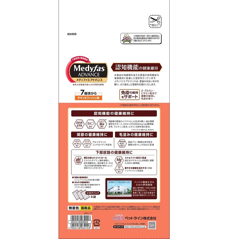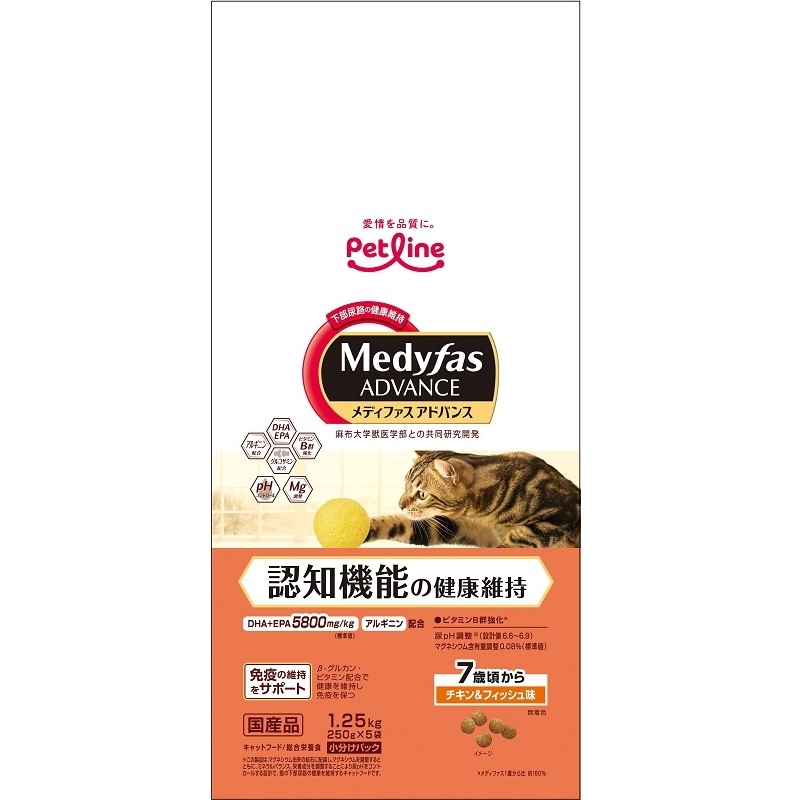 高齢期の愛猫のハツラツとした生活を願い、DHE+EPA5800mg/kf(標準値)配合し脳の健康維持をサポート。