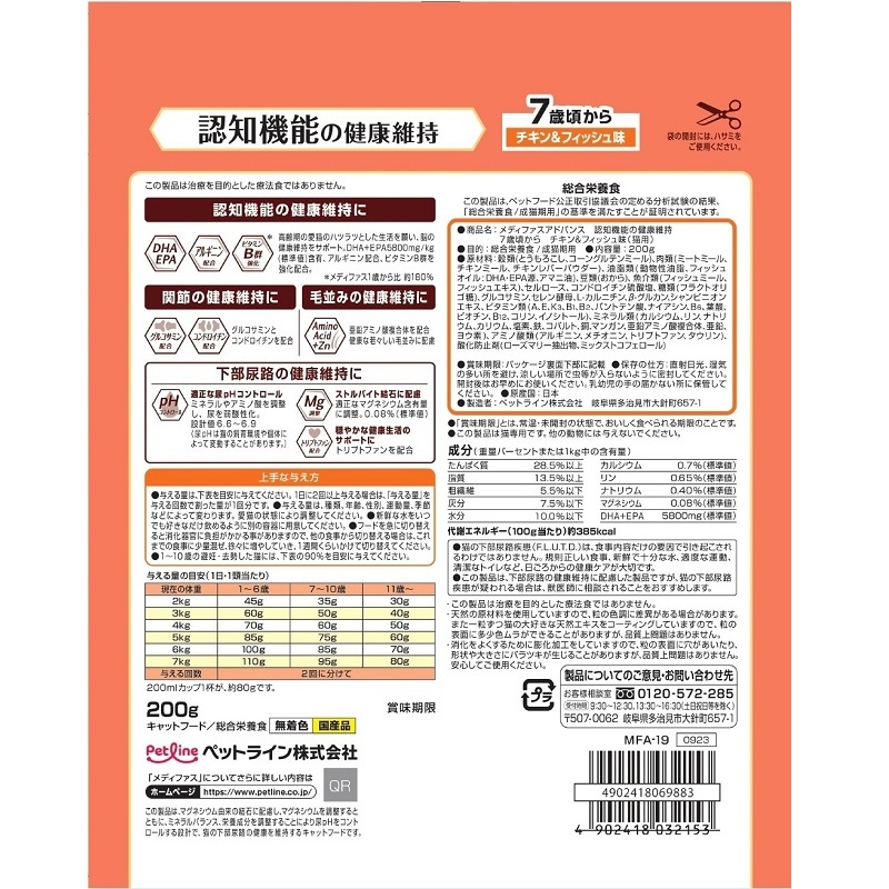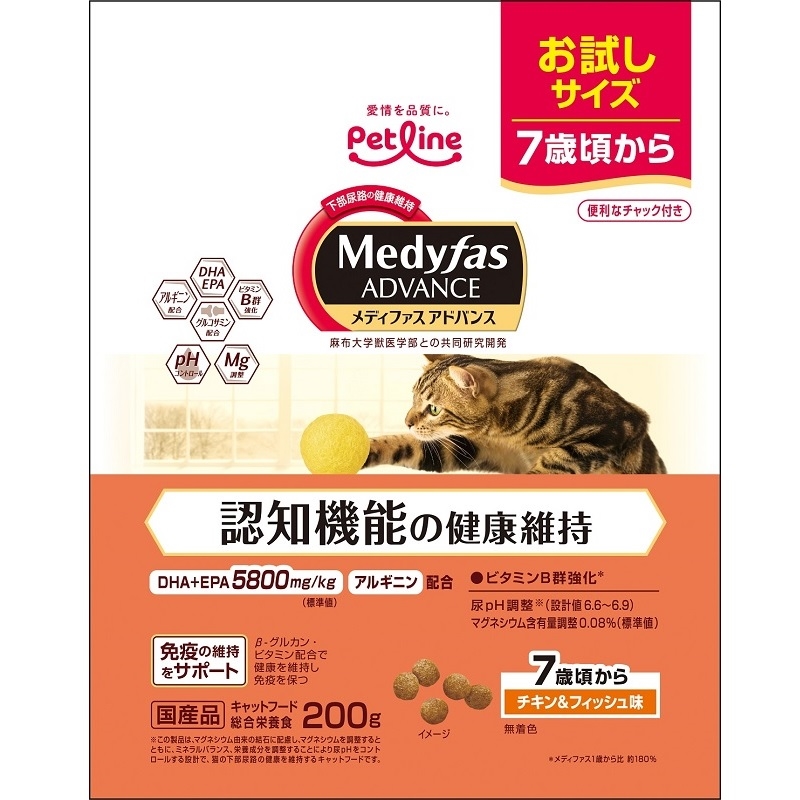 高齢期の愛猫のハツラツとした生活を願い、DHE+EPA5800mg/kf(標準値)配合し脳の健康維持をサポート。