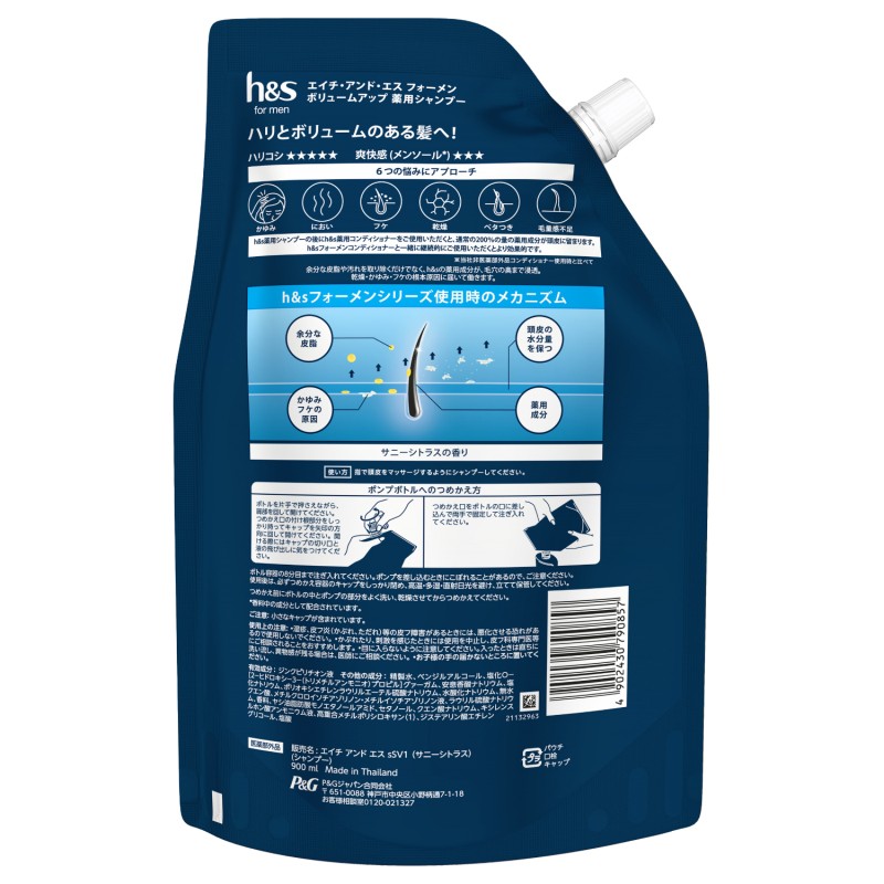 ●余分な皮脂や汚れを取り除くだけでなく、h&sの薬用成分が、毛穴の奥まで浸透。乾燥・かゆみ・フケの根本原因に届いて働きま