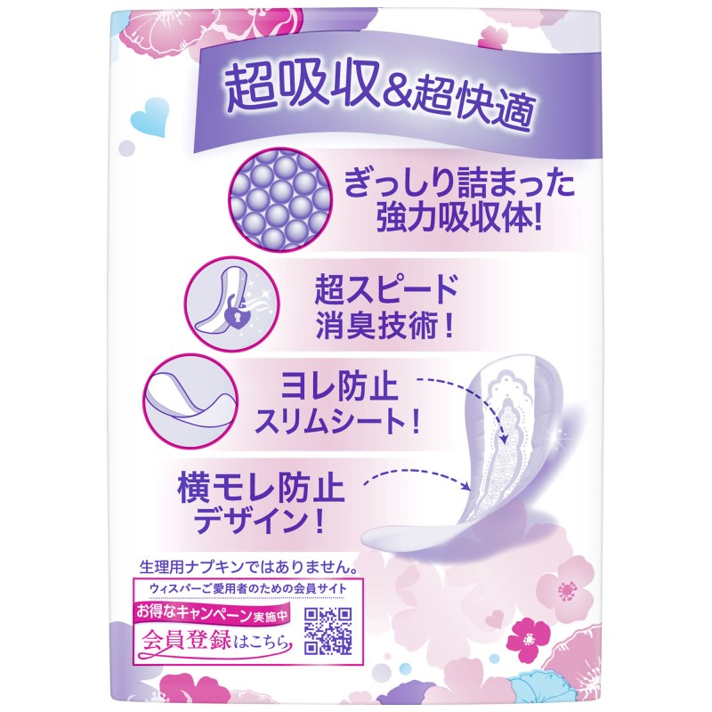 ウィスパー史上初※の「超スピード消臭技術」によりニオイをすぐに消臭するほか、