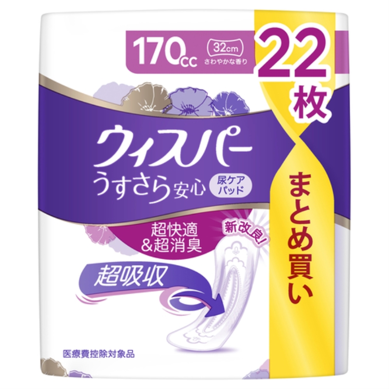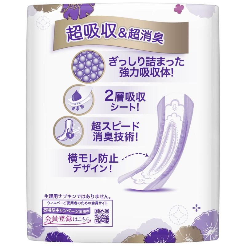 ウィスパーうすさら吸収なら、2層吸収スリムシートで、サッと吸収、スッと消臭