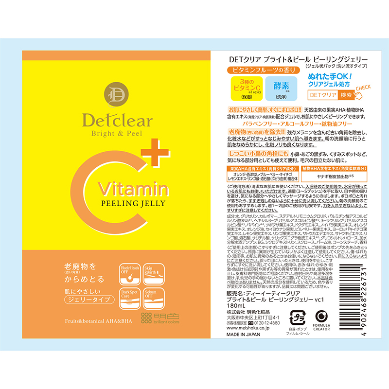 天然由来の果実AHA・植物BHA含有エキス「角質クリア・角質柔軟」配合ジェルで、お肌にやさしくピーリングできます。