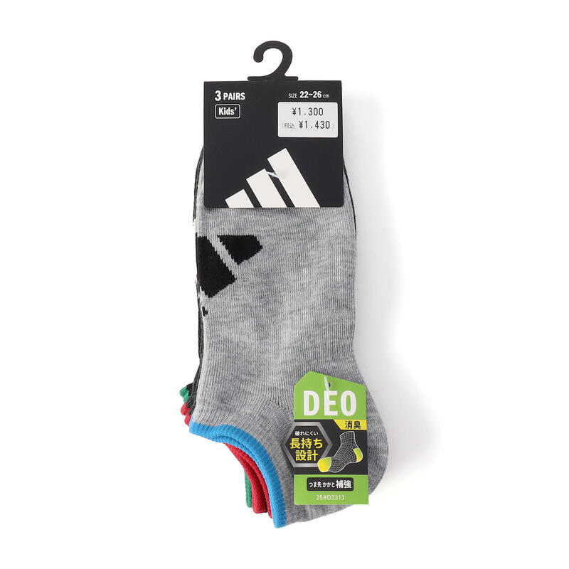 男児 adidas 消臭機能付きスニーカー丈ソックス 3足組