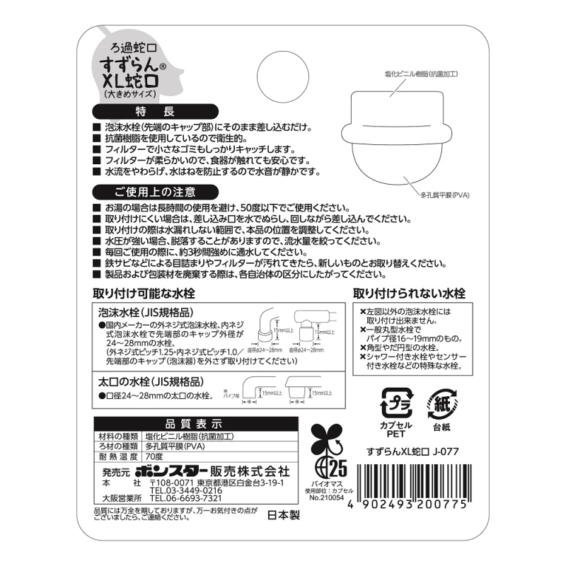 ・水流をやわらげ、水はねを防止するので水温が静かです。