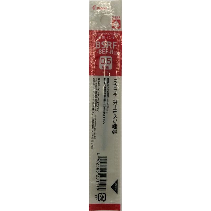 油性ノック式用替芯。ボール径0.5ミリ。インキ色:赤。