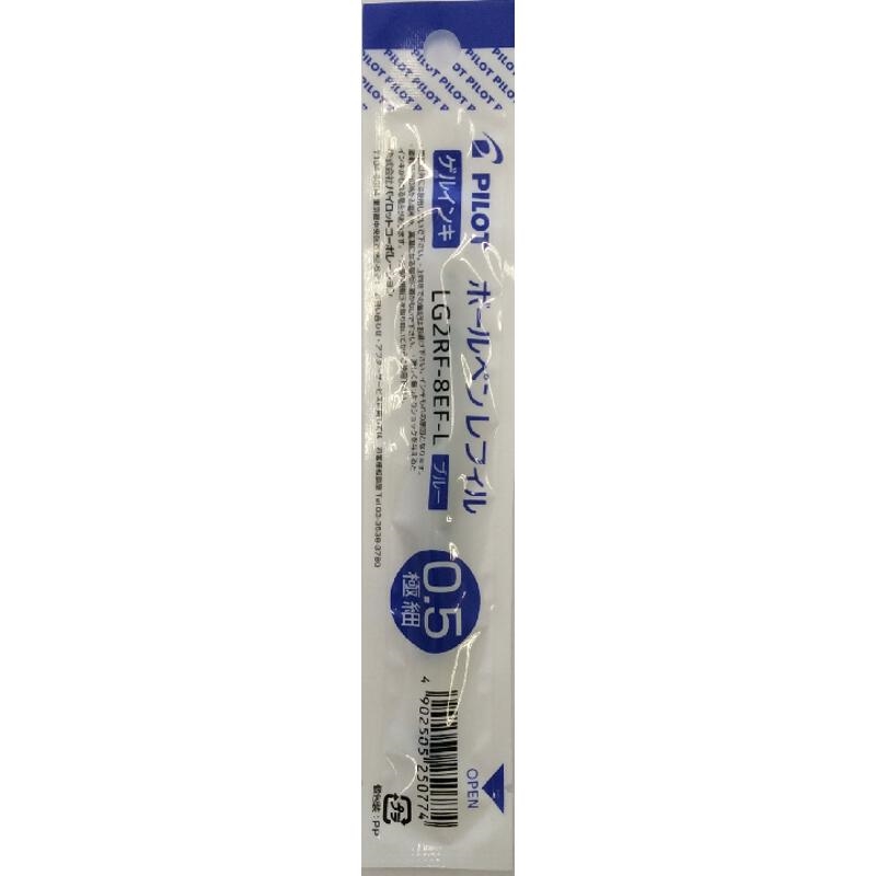 パイロットのボールペン替芯。ゲルインキノック式用替芯。ボール径:0.5ミリ。インキ色:ブルー