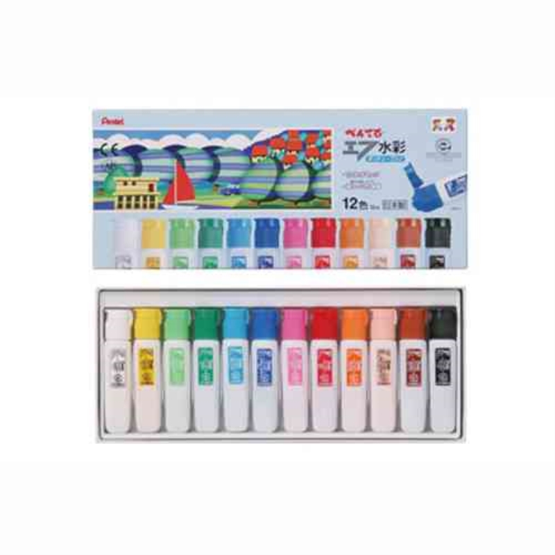 使いやすい12色を、使いやすいワンタッチキャップのチューブに入れて箱入セットに。