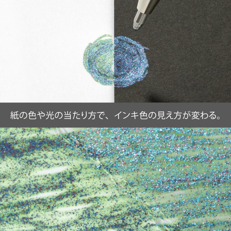 鮮やかな染料インキと、グリッター顔料がたっぷり入った、ゲルインキボールペン。