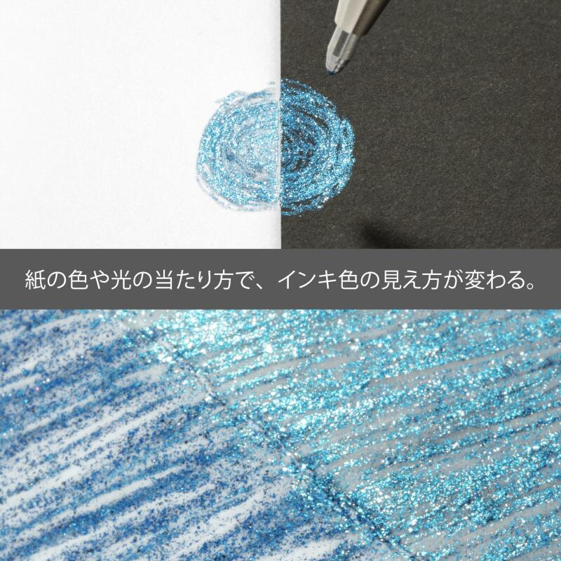 鮮やかな染料インキと、グリッター顔料がたっぷり入った、ゲルインキボールペン。