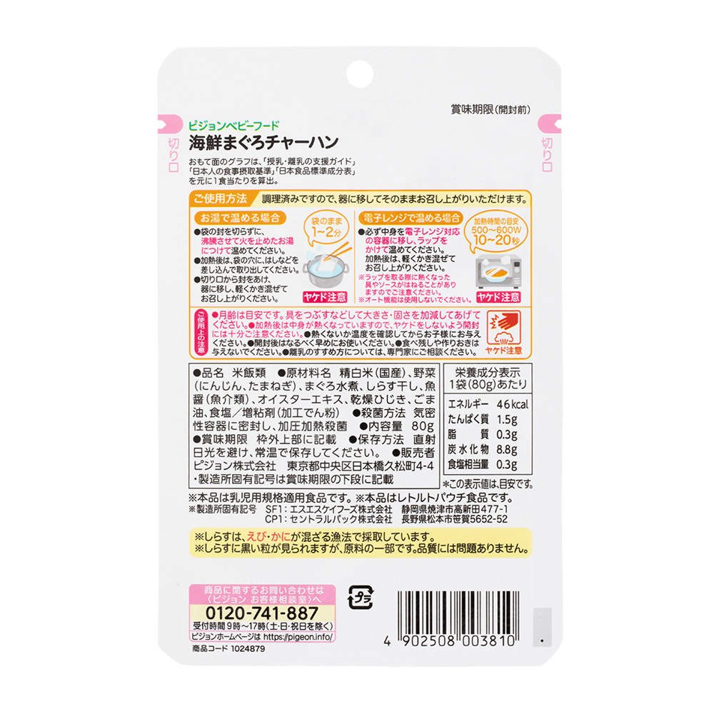 - 精白米(国産)、野菜(にんじん、たまねぎ)、まぐろ水煮、しらす干し、魚醤(魚介類)、オイスターエキス、